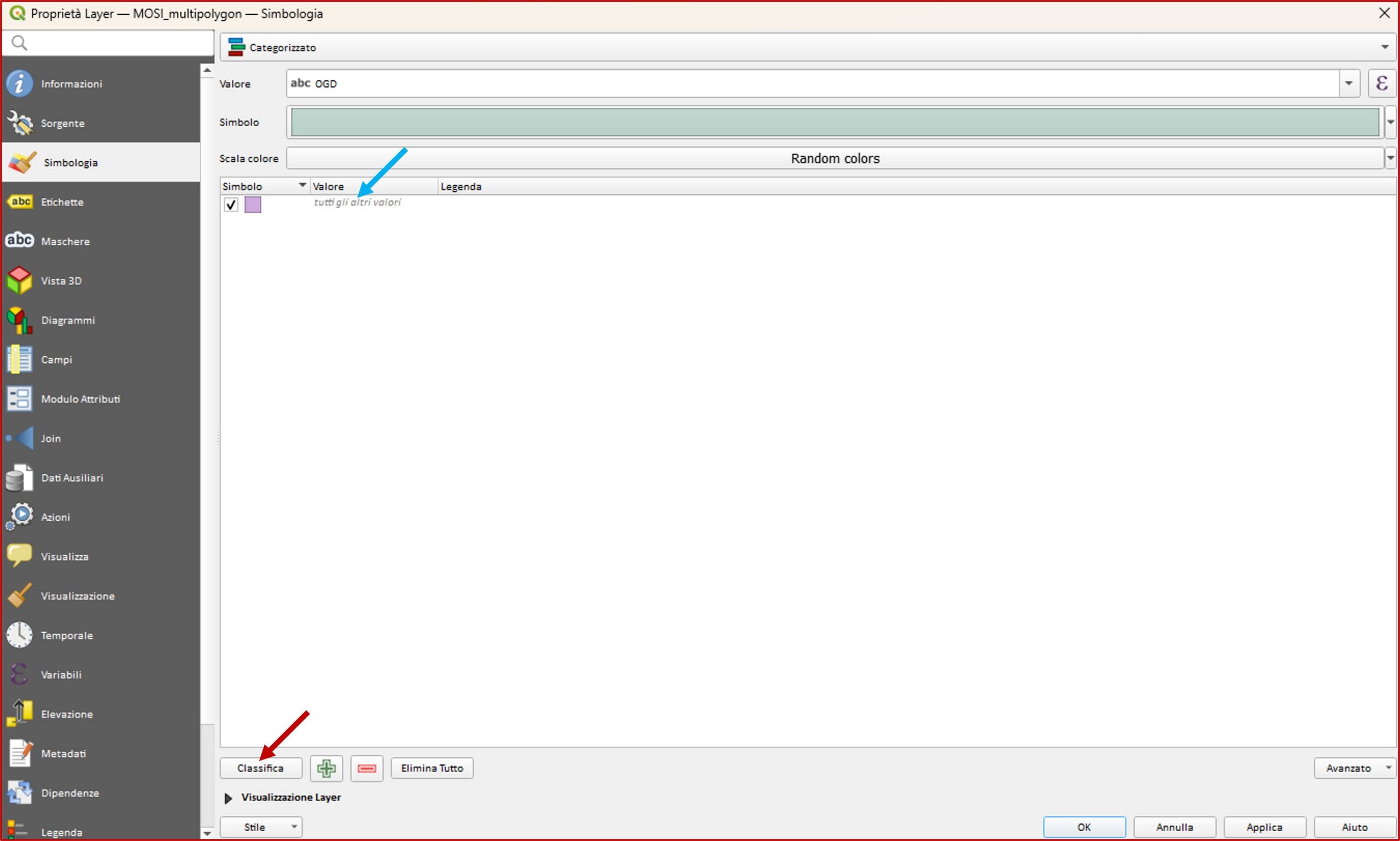 procedura per categorizzare il layer